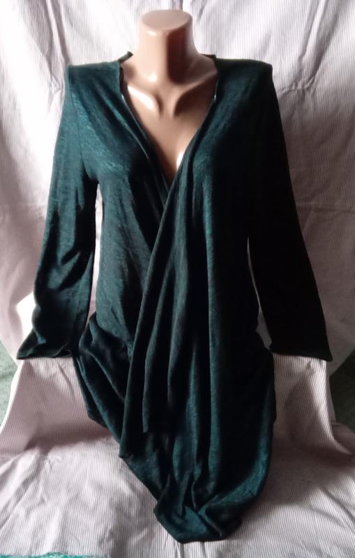 Сучасний,дуже м"який на дотик. З асиметричним низом. Модал являє собою модернізоване віскозне прядильне волокно, що виробляють з целюлози, яку отримують з деревини і отримують в результаті віскозного процесу. Розривна міцність його вище, ніж у віскози, а за гігроскопічностю він перевершує бавовну. ФОТО НА ТІЛІ НЕМАЄ. Довжина 70 Завширш(пахви) 48/55 Річ нова,без паперової бірки -СТОК.