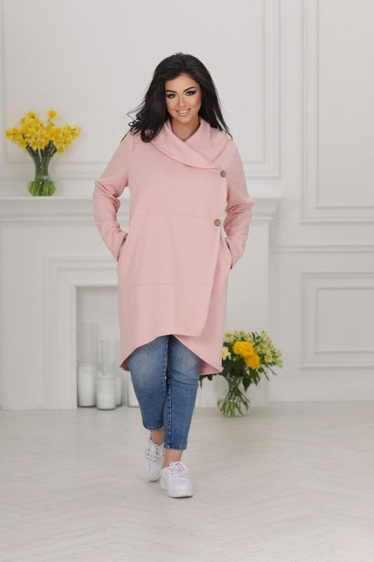 Тканина: 2х нитка(петля -Турція) Колір: м'ята,чорний, моко, рожевий. Розміри:46-48;50-52;54-56;58-60 46-48 Об'єм грудей 106см Об'єм талії 106см Об'єм стегон 114см Довжина по переду від плеча 86 см Довжина по спинці від плеча 102см Довжина рукава від горловини 78см 50-52 Об'єм грудей 114см Об'єм талії 114см Об'єм стегон 122см Довжина по переду 86 см Довжина по спинці 102см Довжина рукава 79см 54-56 Об'єм грудей 122см Об'єм талії 122см Об'єм стегон 128см Довжина по переду 86 см Довжина по спинці 102см Довжина рукава 79 см 58-60 Об'єм грудей 130 см Об'єм талії 130см Об'єм стегон 136 см Довжина по переду 86см Довжина по спинці 102 Довжина рукава 79.5 см ll