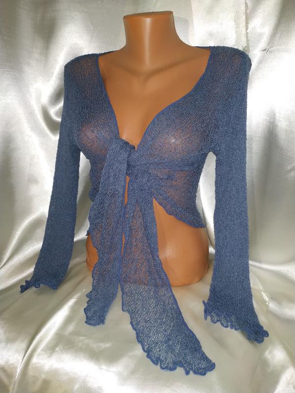 Накидка на плаття паутинка, сіточка, тягнеться на будь який розмір, колір світло синій, тканина дуже приємна на дотик, красиве обрамлення по шву рукава та завязках