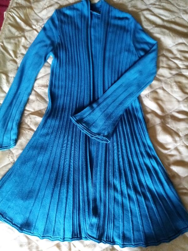 Плечи 39 см. Полуширина изделия к бидеру включая 45 см + тянется. Длина рукава 66 см, удлиненный. Длина кардигана 95 см. Цвет морской волны. Пересылаю безопасной оплатой