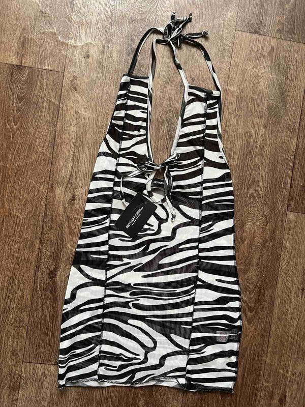 Пляжная накидка новая Prettylittlething, размер M-L, длина без бретелей 76 см, можно регулировать, полуобхват груди 37 см, хорошо тянется, полупрозрачная
