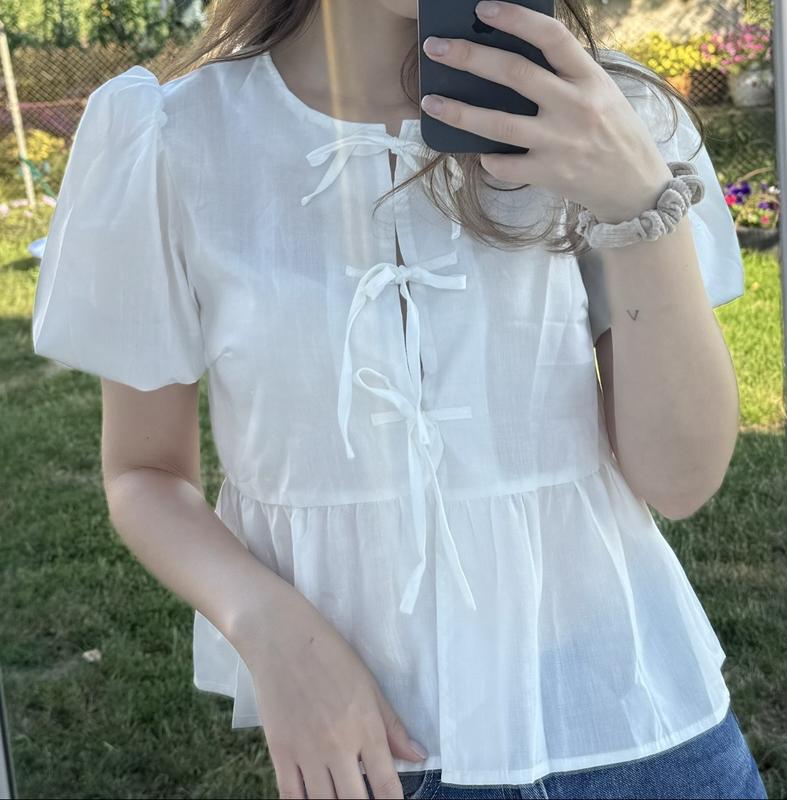 Жіноча блуза зі складками, рукавами-буфами, зав’язаними бантом, багаторівневим халатом, офісною жіночою сорочкою
