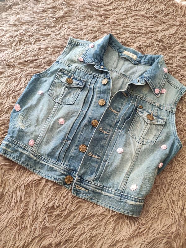 Классная джинсировка. С переливами с темно-синего цвета в голубом (это видно на фото). Наделась несколько раз, без недостатков. Размер: 8 Длина джинсовки 40 см, полуобхват груди 43 см