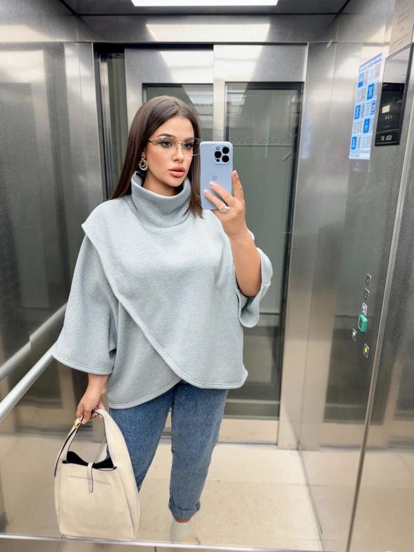 Туника – пончо. Модель 3228 Размеры: 42-46, 48-52, 54-58 🔥Цена: 600 грн. 🔥 Ткань: трехнитка на флисе Пончо свободного силуэта с рукавами "летучая мышь" для повседневного гардероба настоящей модницы. Его можно носить как с юбкой, так и с брюками. Красивый, стильный, теплый он согреет вас в прохладное время года и вполне может заменить вам привычные пиджаки и кофты.