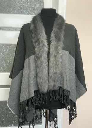 Теплая женская накидка,ткань и эко мех отличного качества,серого цвета, подойдут для роскошной женщины от 54 до 60 размера