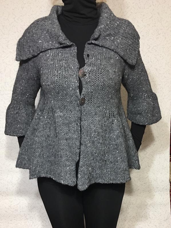 М'яка тепла кофта з перламутровими ґудзиками, сріблясті вкраплення нитки, модний рукав
