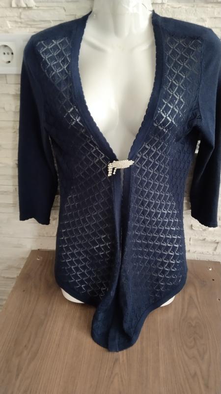 Цвет темно синий,больше как накидка,можно брошь и красота,ткань вязка, вперёди рисунком, длина -56,рукав-44,плечо-8см,пог-45,пот-39,замеры в спокойном состоянии, продажа без брошки)