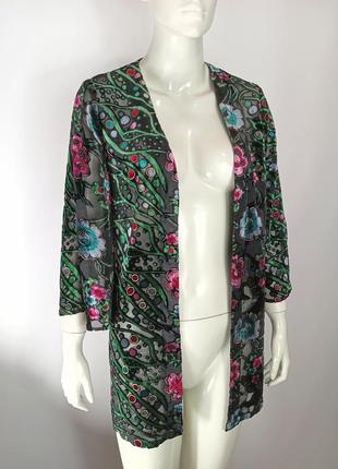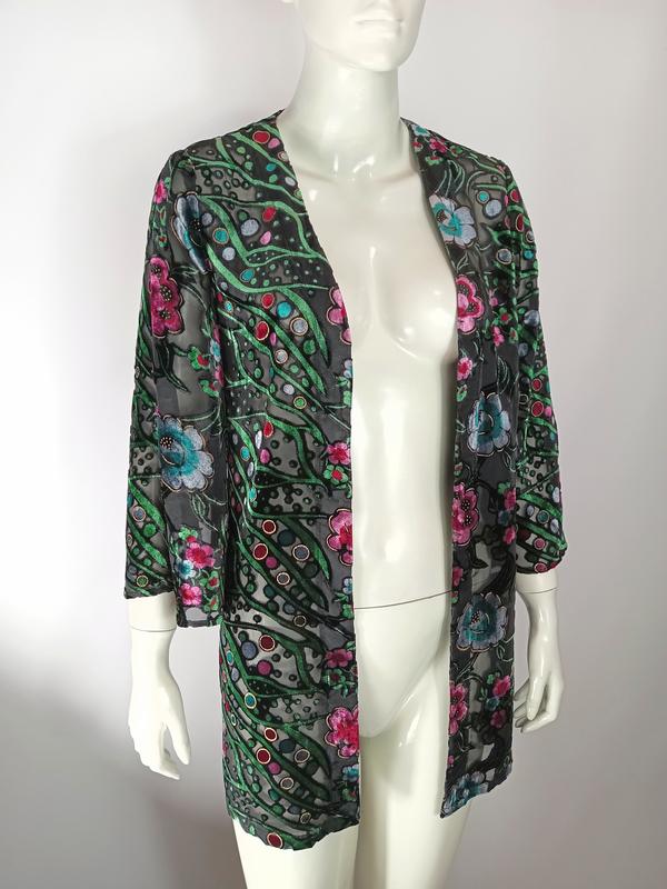 В отличном состоянии , очень красивая , сетка с рисунком из бархата , рукава 3/4 , без застёжки , плечи 34 см , ПОГ 47 см , длина рукава 46 см , длина 72,5 см .