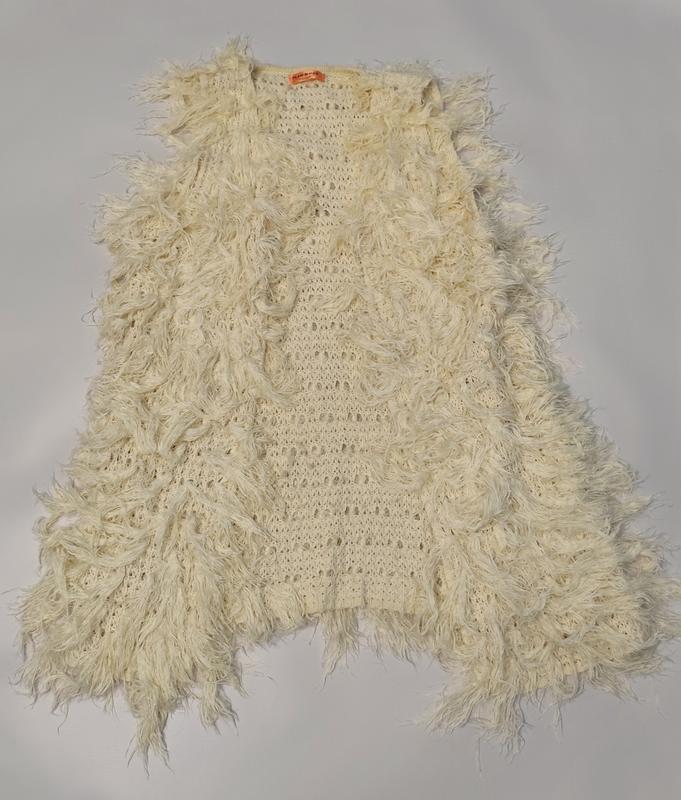 вязаная накидка бахрома, длинночка, прикрывает попу, спереди есть крючки для застежки