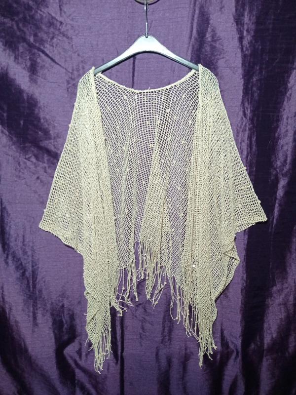 Накидка трансформер бежевая в сетку с бахромой, может быть как юбка.