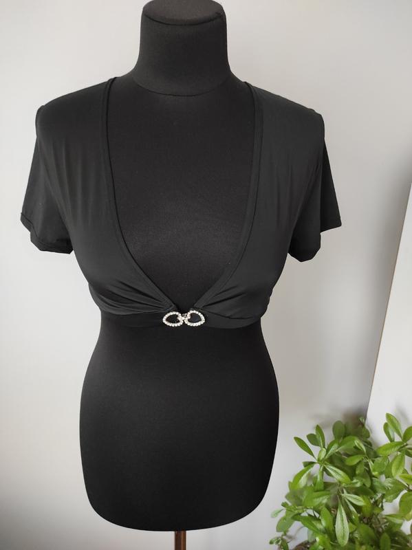 Накидка болеро кофта М р от cottelli collection Расмер - М Цвет - черный Материал - атласный трикотаж 100 % полиэстер Застёжка - брошка с камнями Длина - 30 см, пог - 38 см, низ - 36 см рукав - 15 см, плечо - 9 см