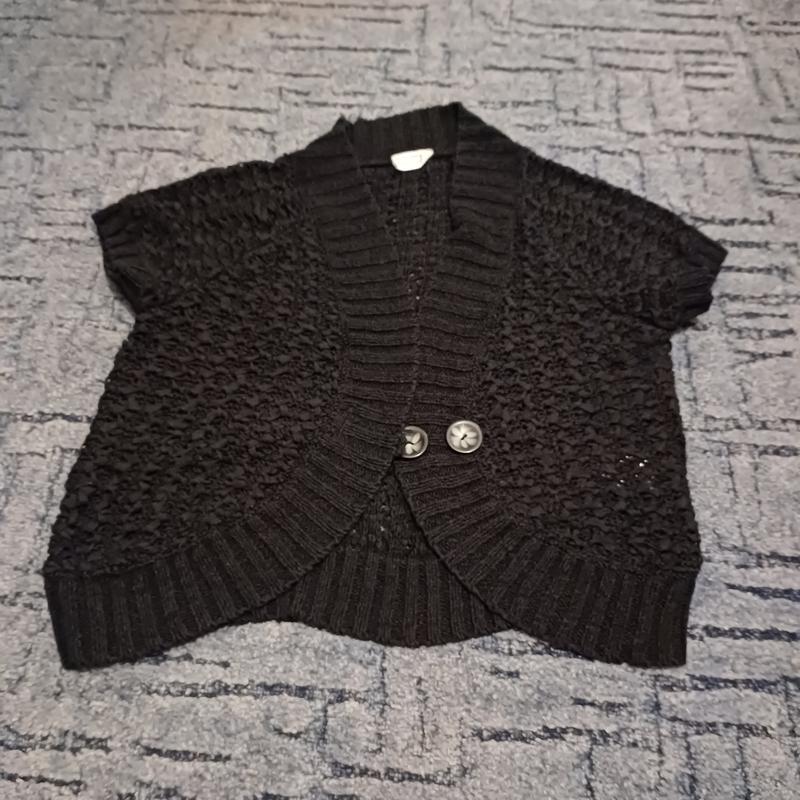 накидка - болеро вязаная на гудзиках с коротким рукавом на бірці розмір 16-18, вле я думаю на 14-16 сяде краще