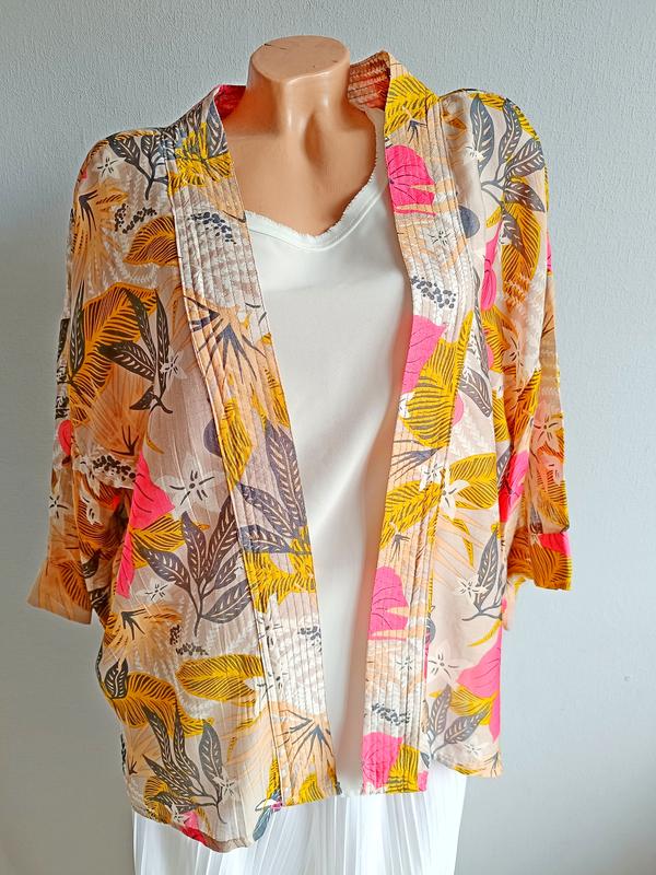 Модал – это вид ткани, относящейся к группе вискозных. Она изготавливается из целлюлозы, полученной из древесины, обычно бука или эвкалипта, и является искусственным волокном, но с натуральным основанием. Легкая, полупрозрачная накидка, которая подойдет для любого образа в жаркую погоду, чтобы защитить себя от солнца, состояние идеально новое, размер one size, замеры: длина - 62 см, ширина спинки - 69 см, ширина полочек по 29 см каждая, плечи - 65 см, рукав от края плеча - 30 см. ПОВЕРНЕНИЕ и ОБМЕНА ТОВАРА НЕМАЕТ! Подписывайтесь и смотрите другие мне товары, так Вы сможете найти интересные эксклюзивные вещи. Строй искренне рада сотрудничества с Вами.🙂