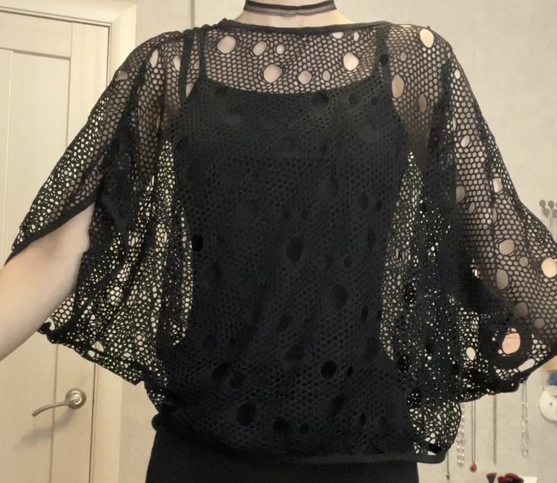 Майка та навіпрозора дирява накидка