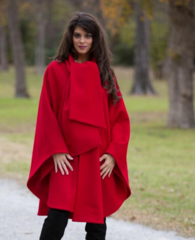 Накидка, кейп от lily ella, one size, классического красного цвета, с шарфом