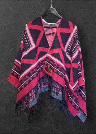 Накидка пончо в стилі бохо в геометричний принт з бахромою