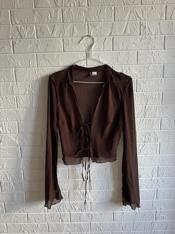 Прозора накидка на завʼязках З виворотними швами Коричневого кольору Розмір S