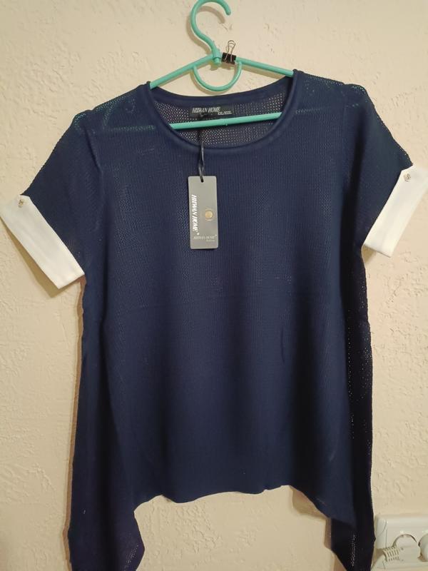 Кофта в'язка у вигляді сіточки дуже гарна,добре тягнеться,заміри в спокійному стані на фото,темно синього кольору дуже гарні рукавчики,подовжена по краях хвости .Тканина рамі – це натуральний, міцний та екологічний текстиль, який виготовляють із волокон рослини рамі (китайської кропиви). Вона відома своєю гладкою поверхнею, матовим блиском, високою зносостійкістю, здатністю до потовиділення та гіпоалергенними властивостями. Рамі використовують для пошиття легкого літнього одягу, а також у вигляді змішаних волокон, наприклад, з льоном, для створення різноманітних виробів.