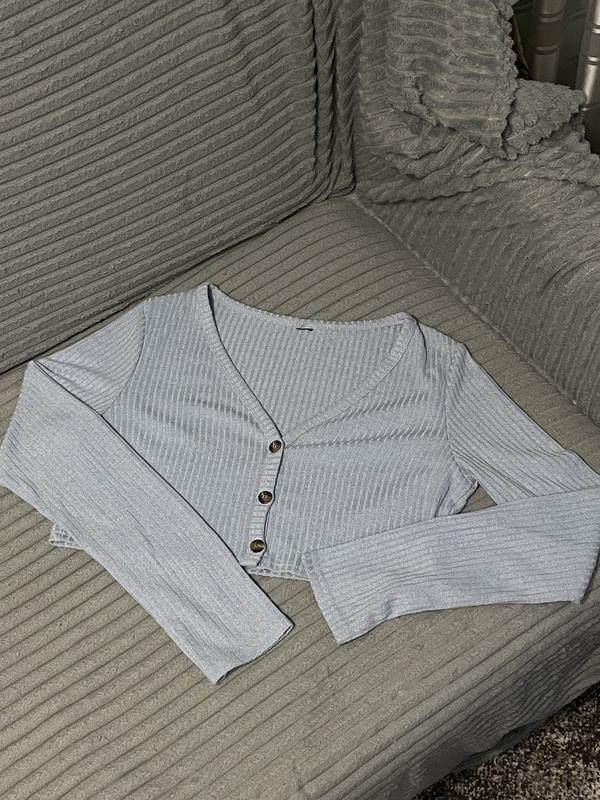 Кофтинка жіноча, ніжно блакитного кольору, підійде як на розмір С - буде трохи вільно, так і на розмір М. В ідеальному стані.
