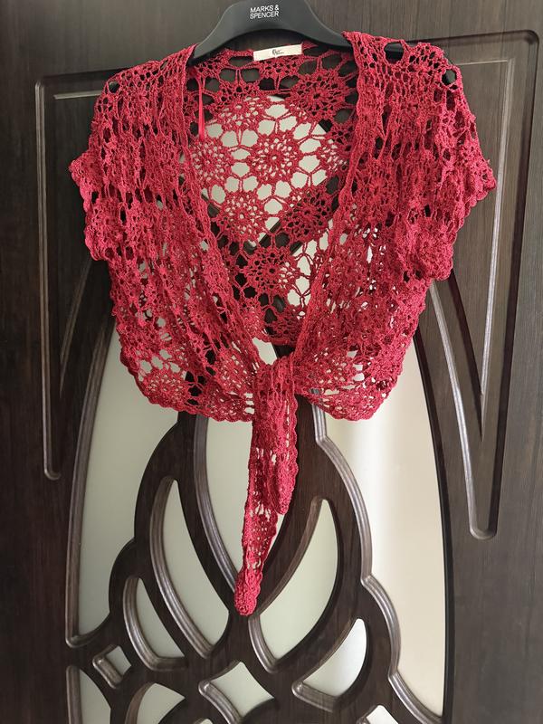 гарна вязана накидка, в червоному кольорі, від дорогого бренду: Kluss collection . Розмір підходить на М/L. За рахунок, завязки можна регулювати.