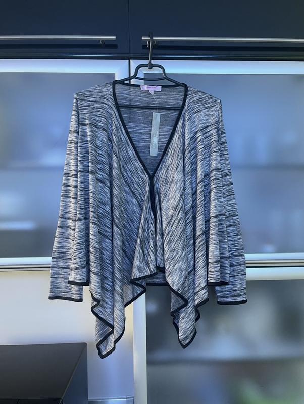 Per Una нова жіноча накидка, кофточка, мʼяка, приємна до тіла. Розмір з бірки 12. Довжина 57 см. Напів обхват грудей від 44 см. Рукав 57 см. Плечі 36 см. Віскоза/поліестер/еластан.
