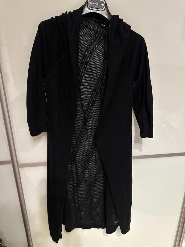 Продаю чорний светер накидку на прохолодний літній вечір. Спереду суцільний трикотаж, ззаду зроблений з ажурним принтом.