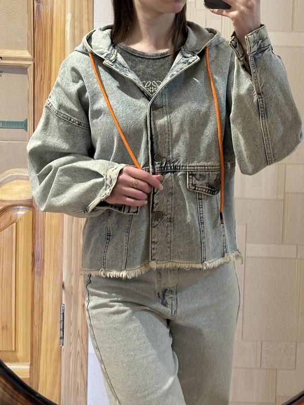 параметри на моделі: ріст 158, ог 80, от 60, об 90🙌🏼 довжина джинсовки 56 см, ПОГ: 59 см, рукав від плечового шва 51 см