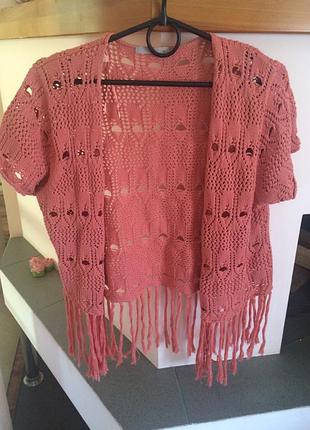 Кофта накидка фирменная отличного качества, длина 52 см( без каймы), ширина по груди 46 см, состояние новое