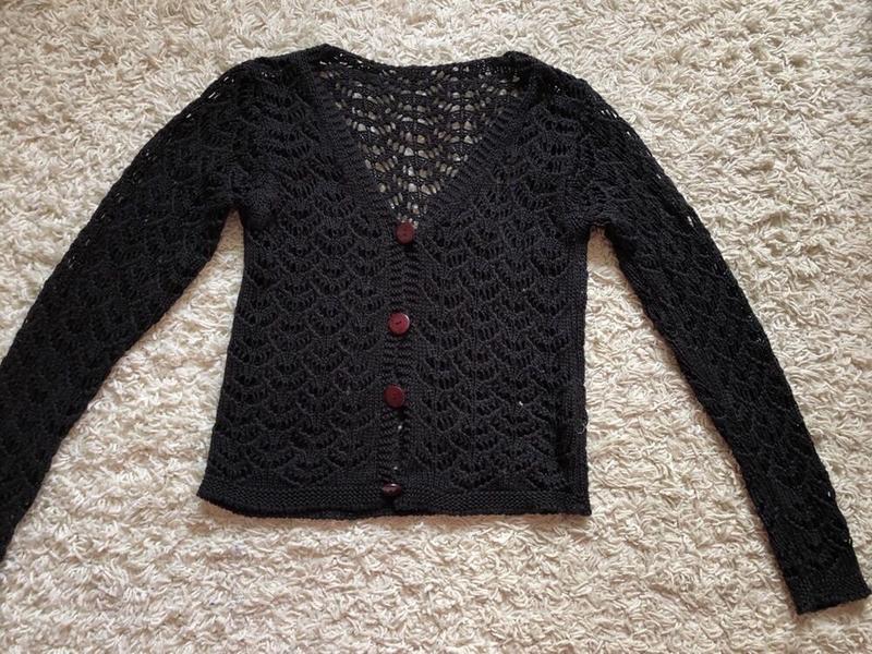 В'язана кофта в сіточку фірми Alan collection. Розмір Xs-s. Можна носити кофту як додаткову накидку до майці, блузки, футболки, або на гольфик.