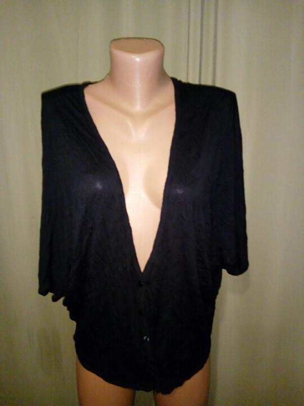 Легенькая базовая черная кофточка в стиле летучая мышь.,на пуговицах.