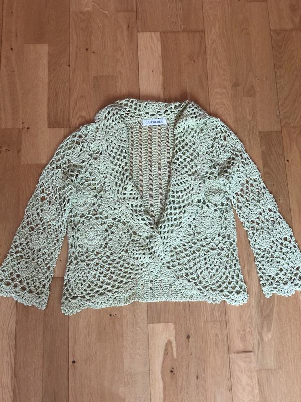 Кружевная, вязанная накидка. Салатного цвета. Состояние новой вещи.