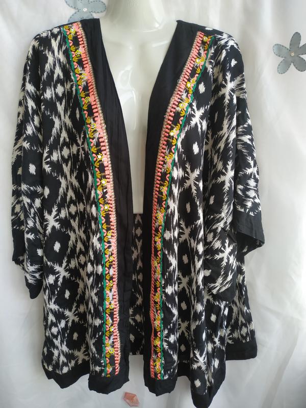 ЛЕТНЯЯ НАКИДКА, КАРДИГАН В ЭТНО СТИЛЕ С ВЫШИВКОЙ. ПОГ.72 поб. 73 ДЛ. 76