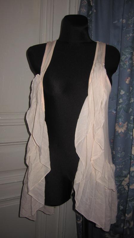 безрукавка кремового цвета. 65 вискоза.35 полиэстер.рюшка-хлопок. ПОГ 48.длина 89см