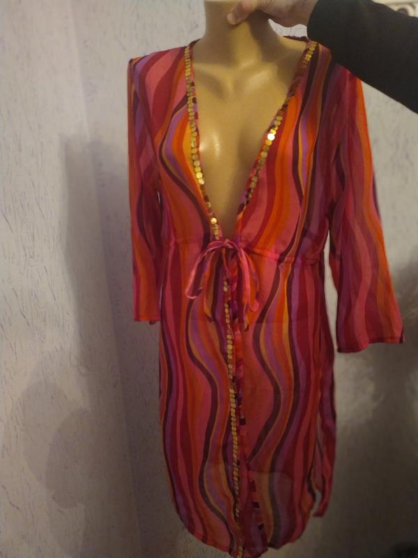 накидка підійде як на пляж так і під футболку дуже гарна але має один дефект на фото видно звертайтесь зроблю заміри.