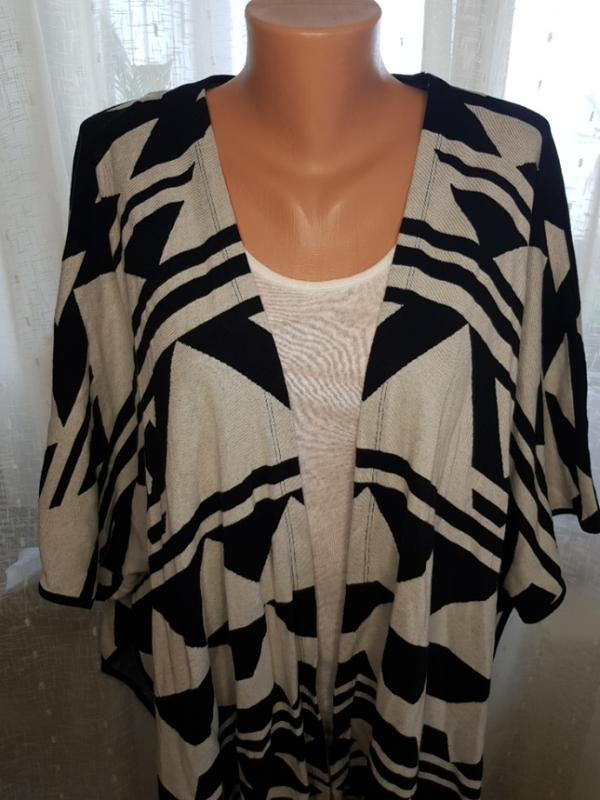 Отличная,мякая,удобная вещь.Подойдет к брюкам,юбке,платью.Длина-70см,рукав цельнокроеный,длина рукава от шеи-48см