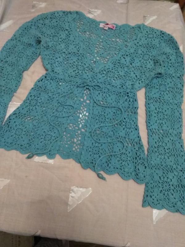 Очень симпатичная кофточка машинной вязки под крючок, размер S.
