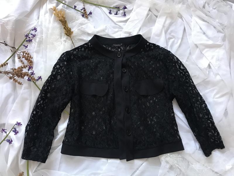 Элегантный пиджачок , прекрасно подойдёт к платью либо вместо топа . Замеры : длина 42 см. ширина 42 см. длина рукава 38 см.
