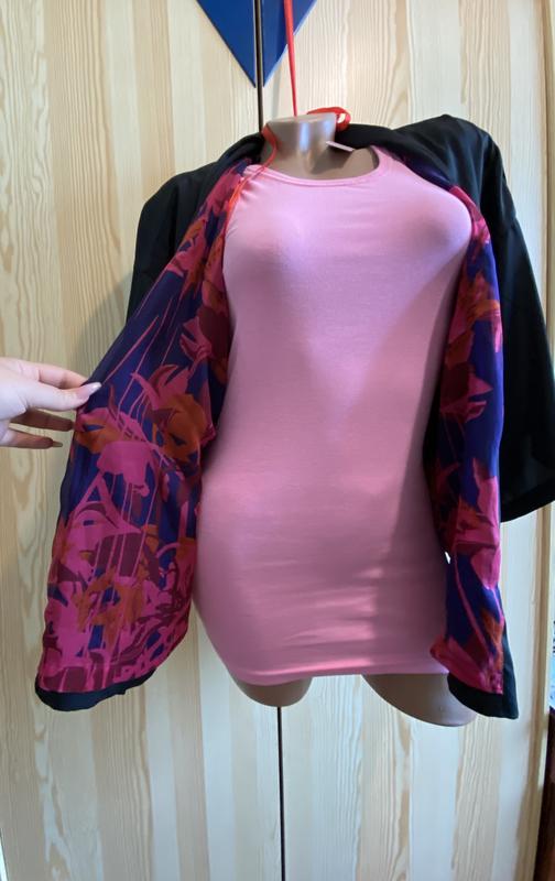 Накидка с очень красивой подкладной. Выглядит просто шикарно! Приятная на ощупь, можно завязать или просто накидывать . Указано xs, по факту подходит на размер М спокойно.