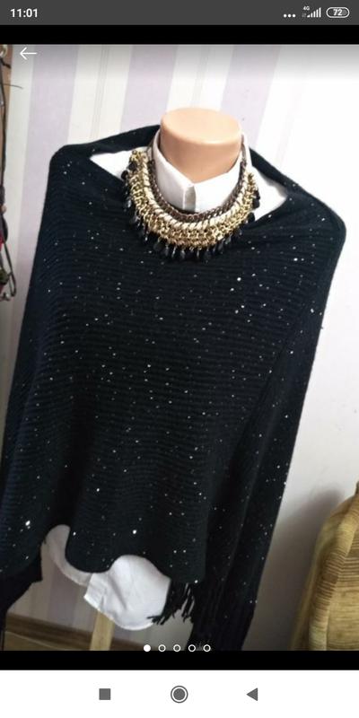 очень красивая накидка, пончо, с мелкими пакетами, подойдёт на любой размер, состав срезан ткань очень мягкая,тепленькая , (смесь шерсти с хлопком по моим ощущениям) длина по средине по спинке 55 длина сбоку без бахромы 75 ширина низа без бахромы 134 горловина полуобхват 32 и тянется