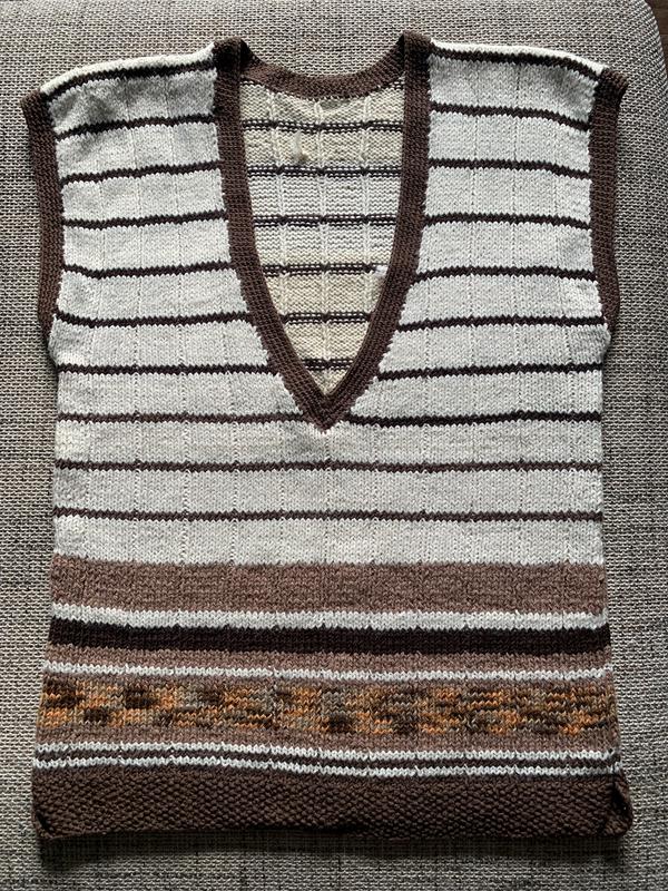 Вязанный жилет из пряжи полушерсть, ручная работа.