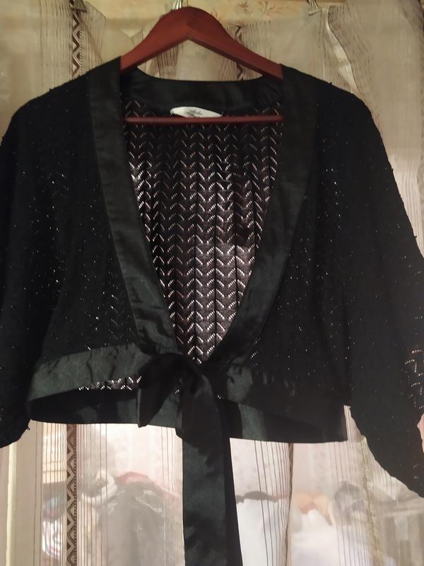 ажурная, отделка из атласа,нашиты бусинки, длина от плеча 34,см , длина рукава от плеча 34см