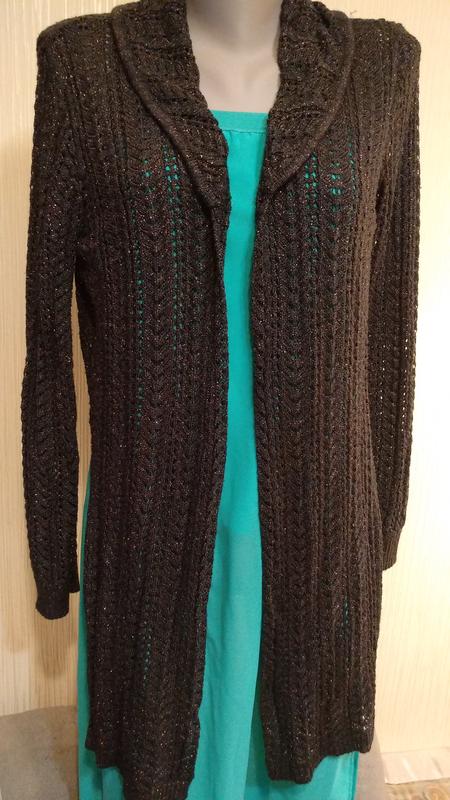 оригинальная накидка коричневого цвета с люрексовой нитью.Д .изделия впереди-85см.длина по середине спинки-43.Д.рукава-62см.ПОГ-50см.торг уместен.