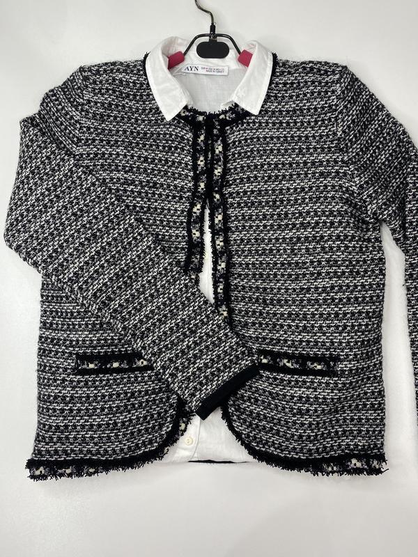 Тёплая , удобная и очень практичная кофточка в стиле Шанель . Можно носить на рубашку , на водолазку или же на Платье , будет отличным дополнением и стильным . Замеры Ширина по плечу 36 см Длина рукава 61 см ОГ 94 см Длина 56 см