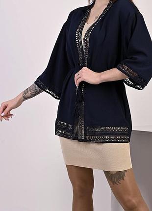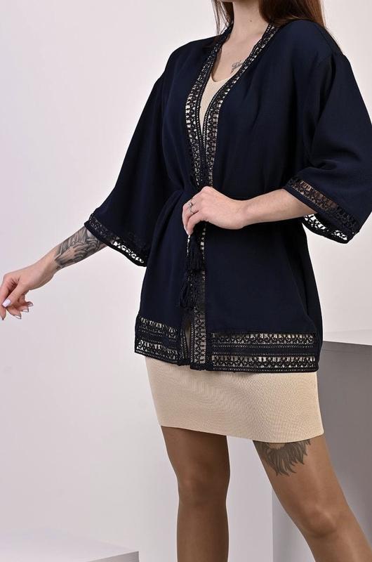 стильна накидка з мереживним оздобленням з поясом колір темно-синій розмір 46/48