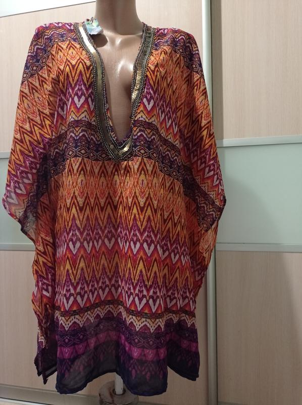 Накидка пляжна/виріз оздоблений бісером, пайєтками Розмір вказаний L Заміри на фото Нове з біркою