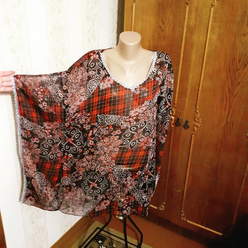 без пояса можна по принту додати будь боки розшиті ажурною прошвой під срібло Дл.80 Шир 100см От124 еврр.XXL наш 54-56р.