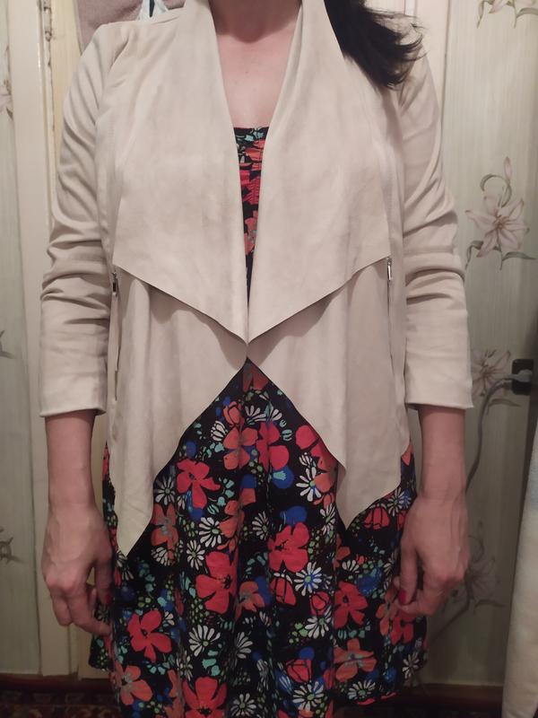 Матеріал замша ЕКО легка Виглядає дуже красиво, не під моє плаття звичайно,воно домашнє. накинула зверху щоб вам показати.