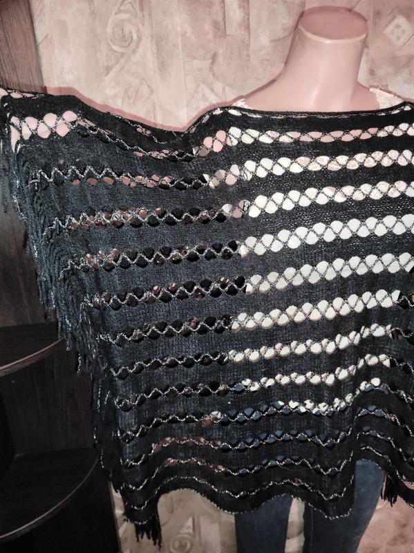 длина - 57см ширина -83см плечо - 34см+ бахрома 11см хорошо смотрится с черным гольфом или кофточкой нить с люрексом скрывает все ненужные выпуклости