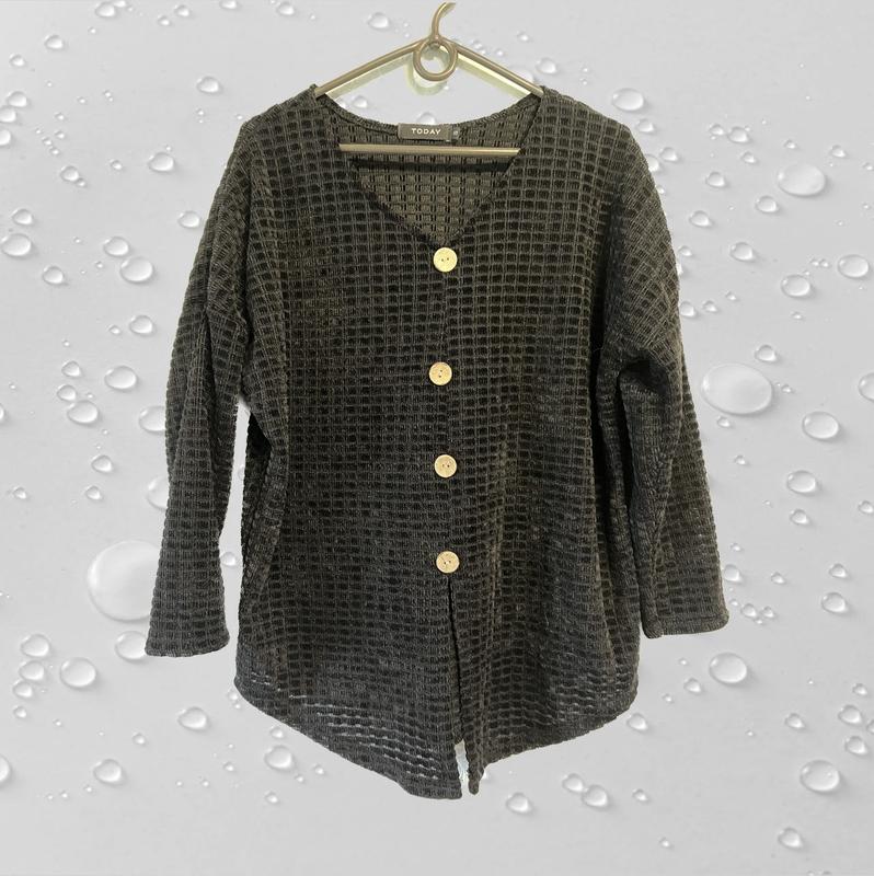 Розмір S , оверсайз підходить на М і L. Довжина 68 см, ПО грудей 52 см, довжина рукава 33 см ( три четверті )