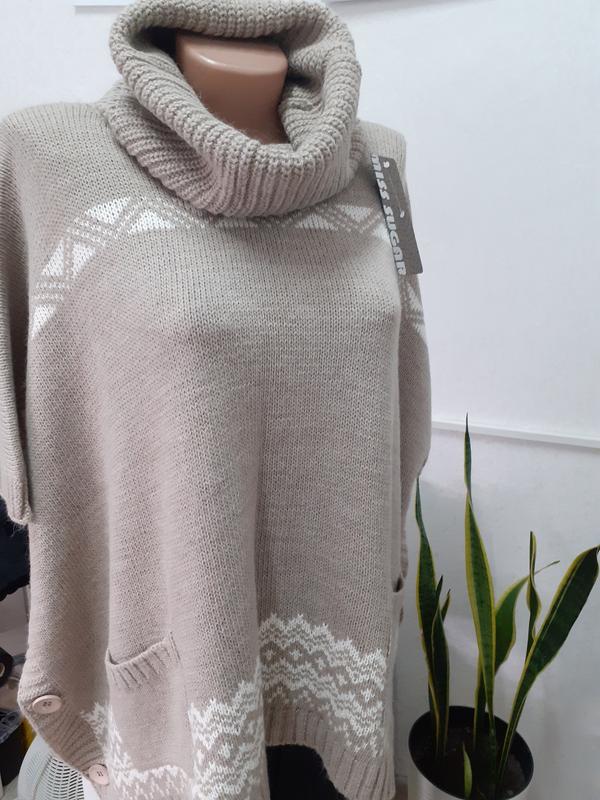 Шикарное новое вязаное пончо с орнаментом, страна изготовитель Италия. Качественная теплая вещь, подойдет на любой размер.Очень удачное сочетание цветов, понятная на ощупь, есть два накладных карманчика.Незаменимая вещь в холодное время года.